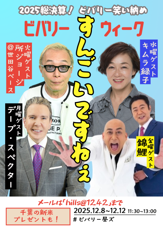 高田文夫先生と、キャラクターの濃~いパーソナリティがお送りする「昼休みのお笑いバラエティー」ラジオビバリー昼ズ!