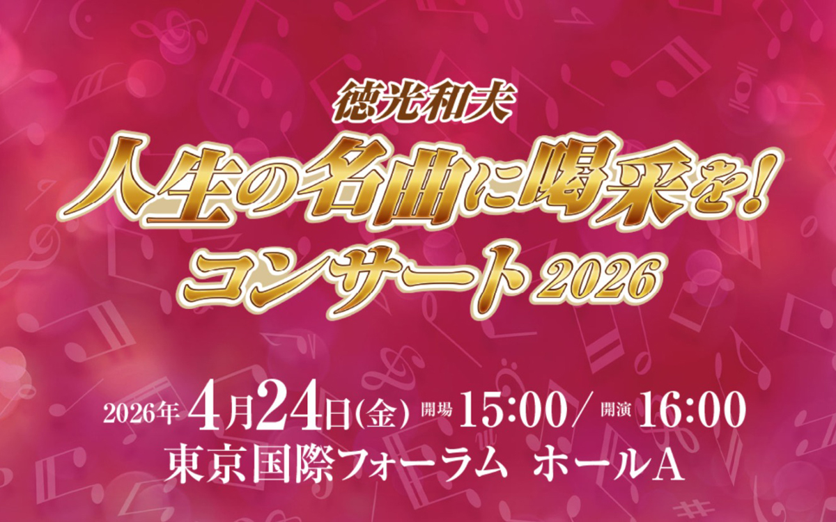 今年2025年4月に行われた"あの"コンサートが帰ってきます! 「人生の名曲に喝采を!コンサート2026」 2026年4月24日(金)15時開場/16時開演 東京国...