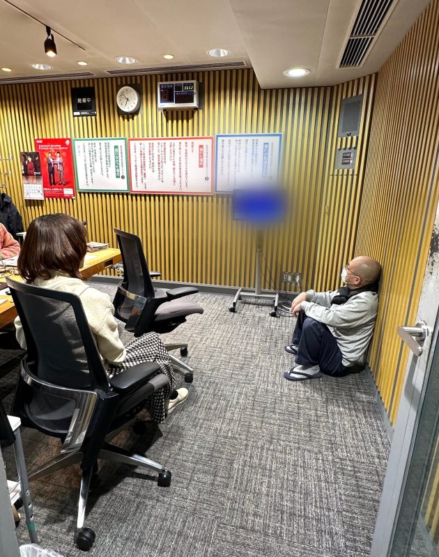 本番前にスタジオの中で座りこんでのスポーツ観戦!がんばれ〜日本🇯🇵