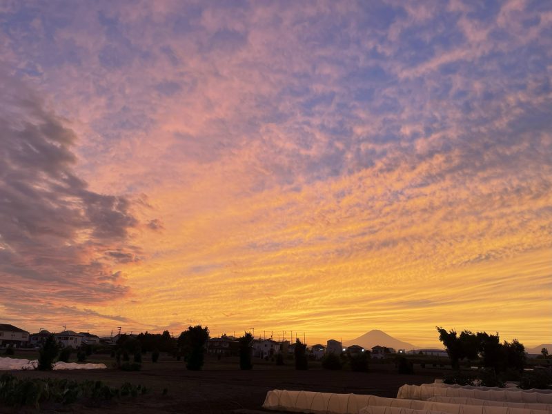 昨日の午後5時30分頃、夕焼けが綺麗でしたので、家の裏で西の空をスマホで撮影しました。