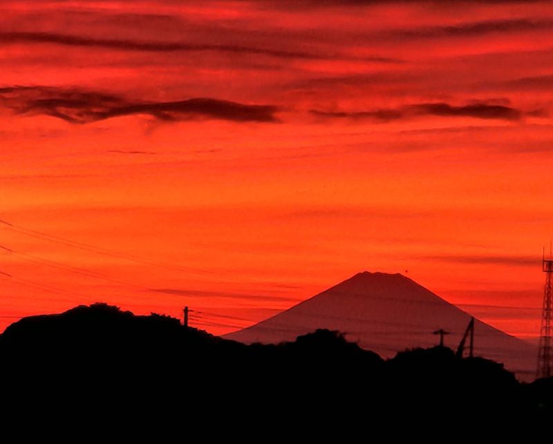 夕食の支度をしていたら あまりにも外が赤かったので外にでたら 真っ赤な夕景が広がっていました。