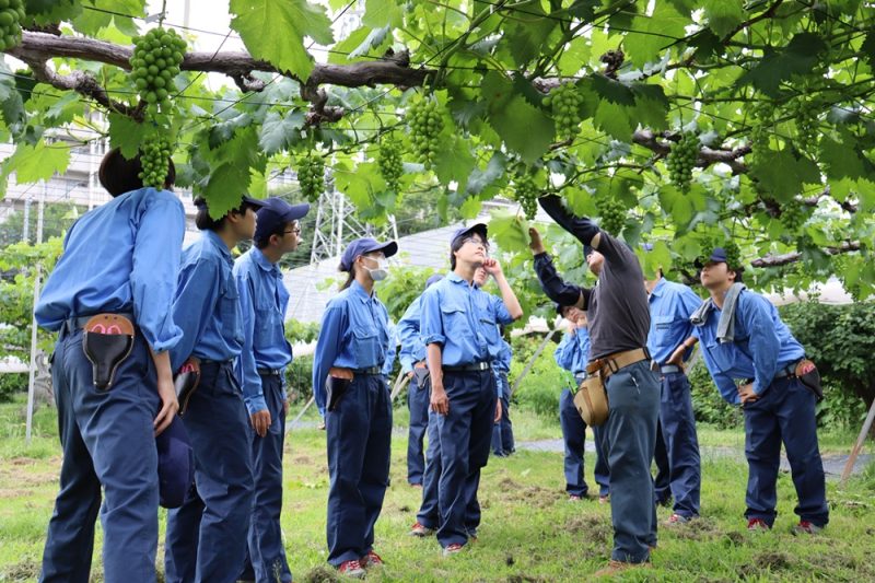 「果樹」の授業でのブドウの栽培管理実習