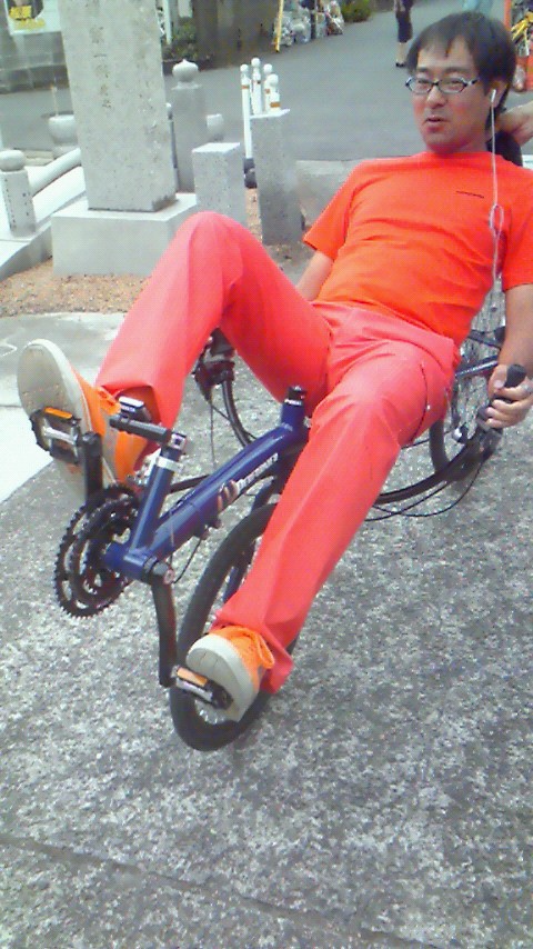 寝そべるようにすわり、前輪よりも前にペダルがある…。