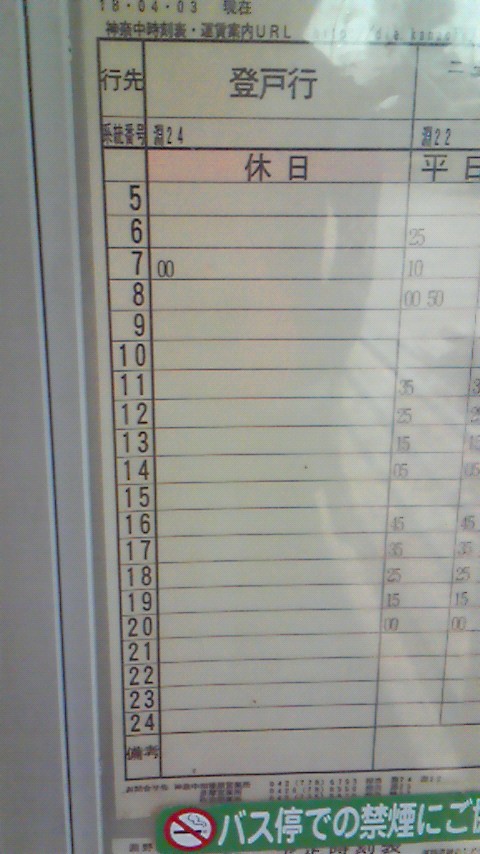 淵野辺駅北口の、そのバス停の時刻表を見ると…、あったあった!