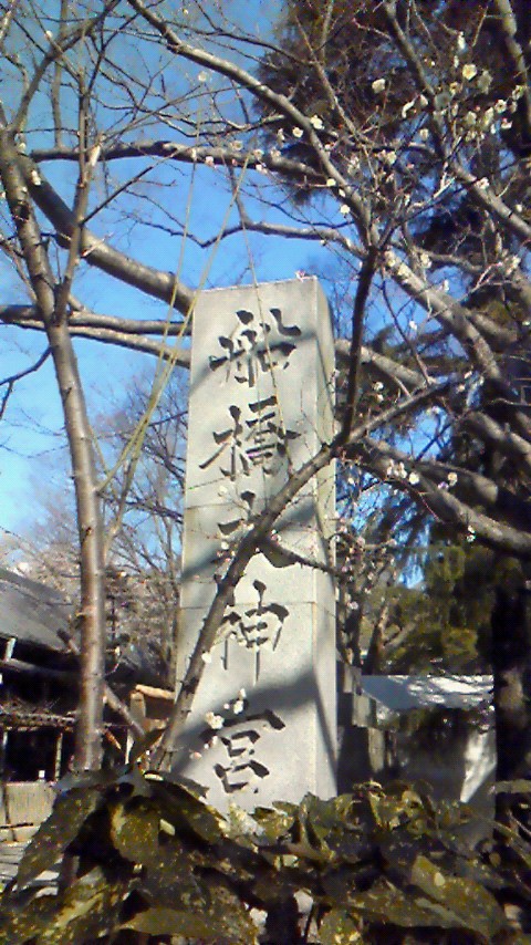 今日の中継場所、船橋大神宮の境内で、春の便りを見つけました。
