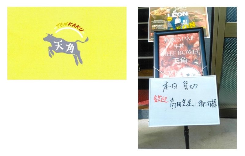 通りに面してるんだからやめろ、御一行様は! 天角の下に木久蔵の下手くそな字で書いてある。