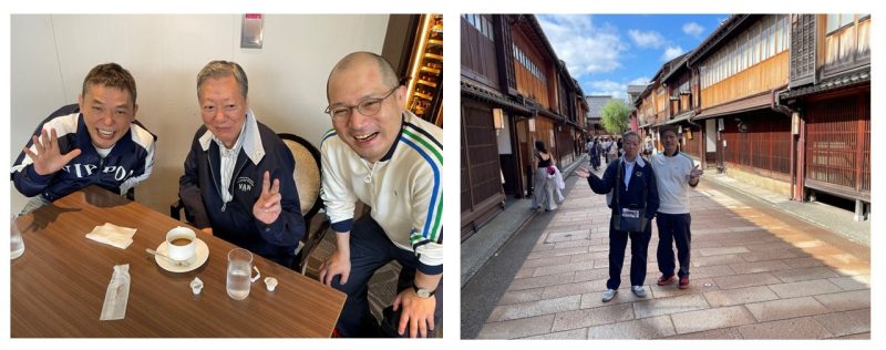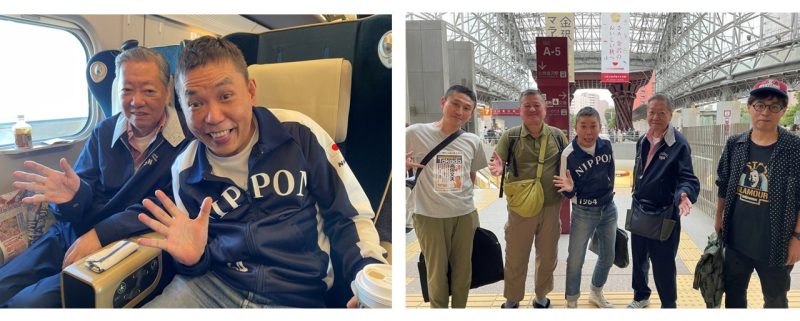 右は金沢駅に降り立った一座(高田文夫社中)。