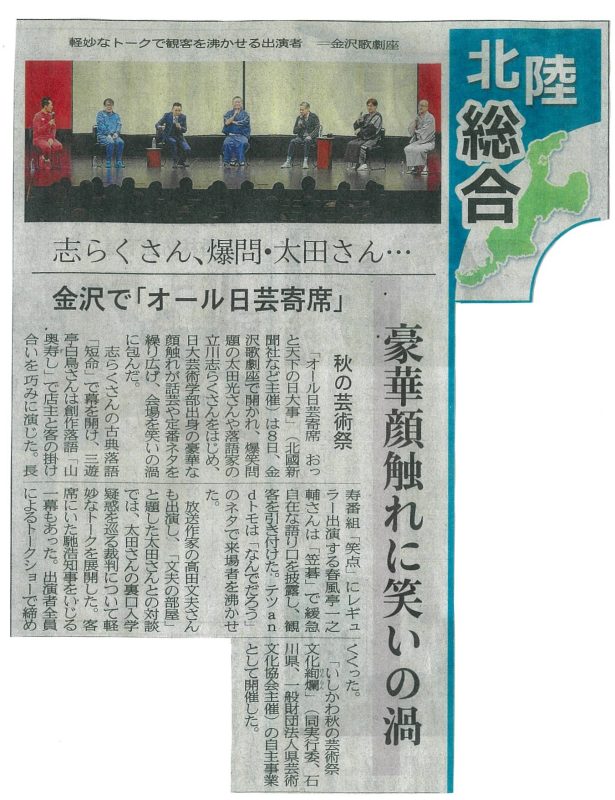 まだまだだと思っていたら もう10月。 そして もう今週、金沢でLIVEだよ。 「オール日芸寄席IN金沢」である。 東京以外で めったに見られない私と爆笑問題・太田...