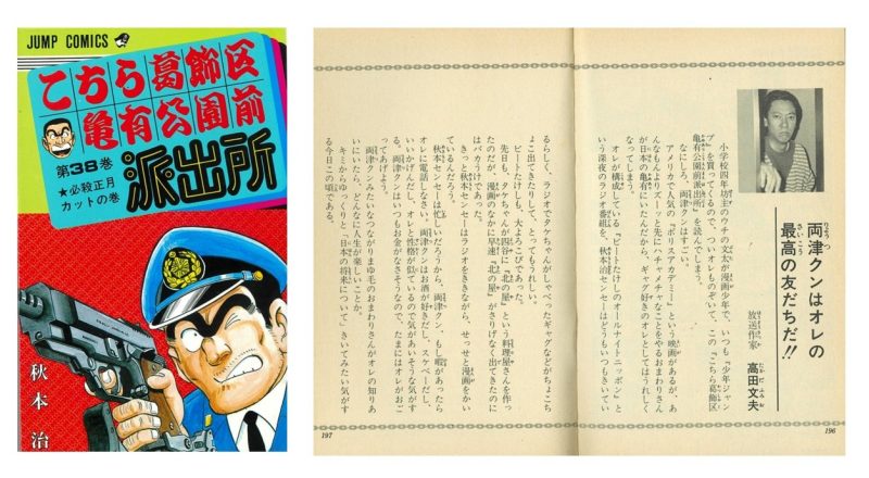 「こち亀」の第38巻<必殺正月カットの巻>の巻末196ページ。「両津クンはオレの最高の友だちだ!! 高田文夫」とある。動かぬ証拠だ。(1986年1月 第1刷)