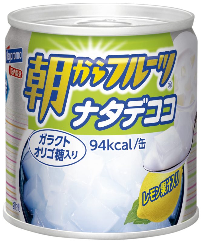 その中にシラップごと『朝からフルーツナタデココ』を加えて混ぜ合わせる。