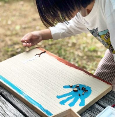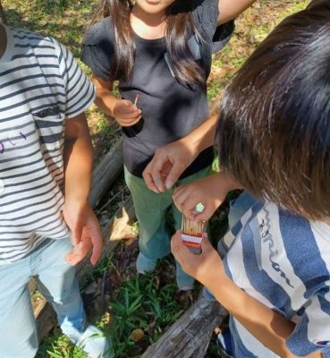 越野「公園によくある備え付けの遊具で遊ぶのではなく、自然の木や土、草花や水、昆虫など…そういった自然のものを使って遊ぶのです 子どもたちが自分で工夫して遊びを見つけるのがポイントになっています」