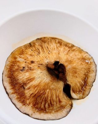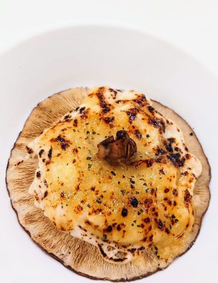 人気ナンバーワンの「想いの茸 北海道バター醤油しいたけ焼き」をいただきました。手のひらくらい大きいしいたけでジューシーでしたよ。