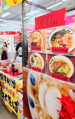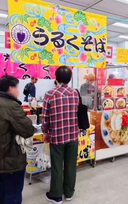 次に向かったのは、北海道の真逆・南の沖縄。創業39年「うるくそば」ブース。いただいたのは「軟骨ソーキそば」。もちもちの麺に軟骨ソーキ、アーサーという緑色の海藻、ネギ、生姜がトッピングされており安定の美味しさ。東京にもファンが多いようです。