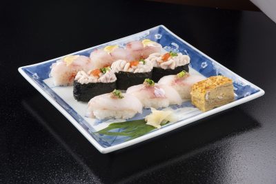 「よし寿司」身の淡白な味わいと白子の濃厚な食感、鮮度抜群な真鱈の魅力を余すところなく楽しめる「鱈の握り・白子の軍艦・鱈の押し寿司」