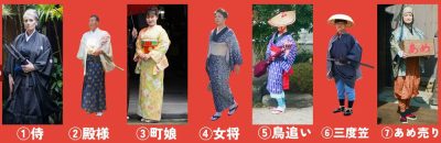 米倉「赤間宿には江戸時代、参勤交代の行列が通ったとされることから、侍や殿様の衣装を用意しております。またかつては商家がズラリと立ち並んでいたことから、町娘や女将の衣装もあります。旅人が行き交ったということから、三度笠や鳥追いといった時代劇でしかご覧になったことのない旅人の衣装があります。あと江戸時代のストリートパフォーマーとして、あめ売り。そんなラインナップです」