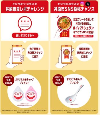 2つ目は、Webフォームに丼の感想を入力していただいた方に、先着でオリジナル缶キャップをプレゼントする『食レポチャレンジ』。3つ目が、店舗にある『三ツ星認定プレート』を使って撮影した丼の写真に #イバラシュラン とハッシュタグを付けてSNSに投稿していただいた方に、先着でオリジナルれんげをプレゼントする『SNS投稿チャンス』です」