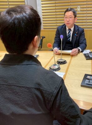 晴の輔。越智さんは、政務官という赤澤大臣を支える立場の方ですが、実は「商工会青年部」のご出身。