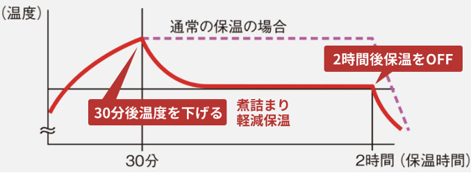 ・保温開始30分後に温度を低くし、煮詰まりを軽減