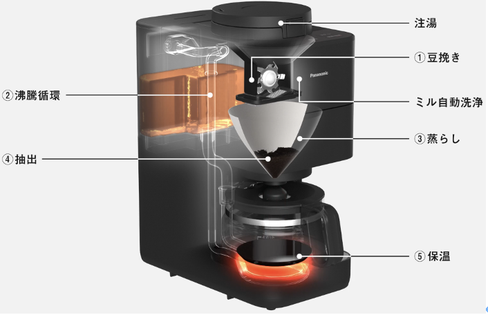 ・水を循環させながら沸騰させることで、おいしさを引き出す最適な温度に調節する