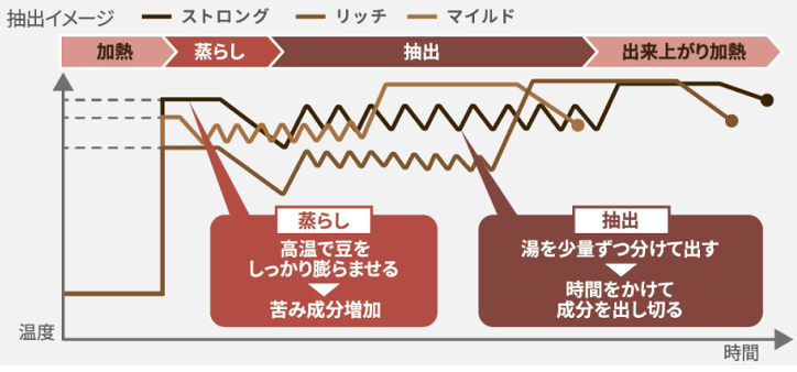 ・沸騰循環で一投目から高温で抽出しコクとキレを実現