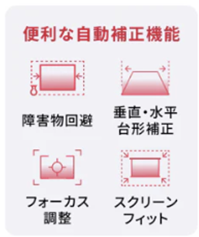 ・垂直・水平方向の台形補正、フォーカス調整、投影面に合わせて投影サイズを調整するスクリーンフィット、投影時に障害となる物体を感知しサイズをリサイズする障害物回避の4つの機能をすべて自動で行う独自のテクノロジー「Nebula IEA 3.0」を初搭載