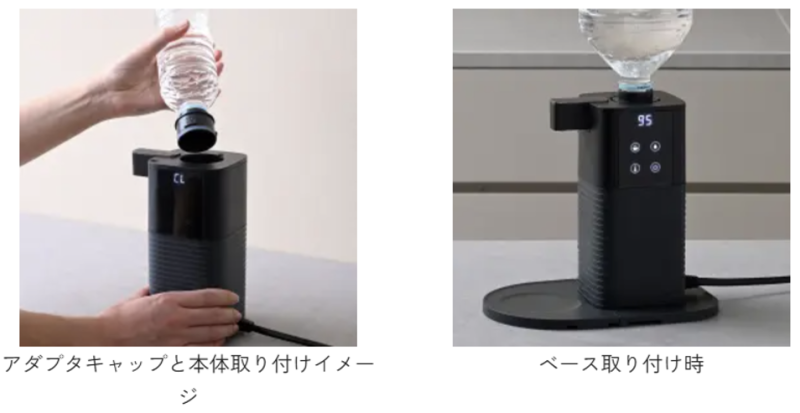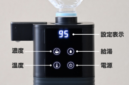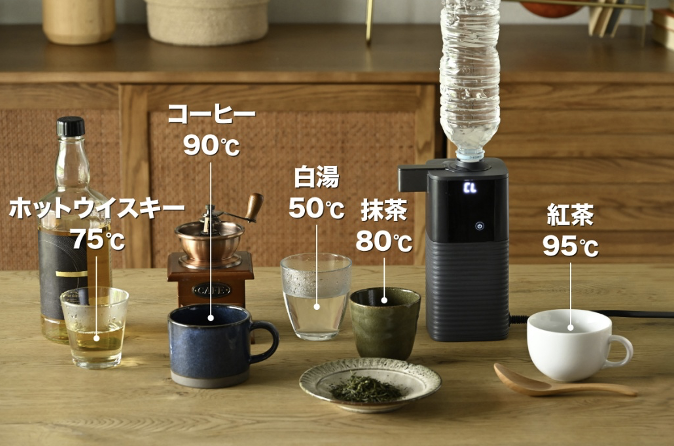 ■ペットボトルを取り付けてわずか0.5秒! 50℃から95℃の5℃単位設定でお湯が出る