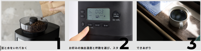 ・飲みたいときにスイッチひとつで手間なくコーヒーを淹れられる