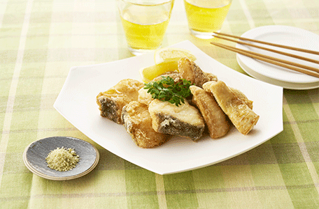 白身魚とたけのこのから揚げ 日清ヘルシークリアでカラッと揚げた、白身魚とたけのこのから揚げ。揚げることで、食材のおいしさがひき立ちます。ピリッと山椒塩...