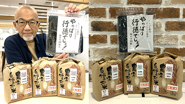 正解すると……、番組から生まれた夢のコラボ! あさぼらけリスナーの農家さんが作ったお米「コシヒカリ・粒すけ・ふさこがね」各2キロと、板のり「やっぱり行徳でしょ!」をセットにした「あさぼらけ おにぎり最強セット」を抽選で毎日1名、計5名様にプレゼント!!