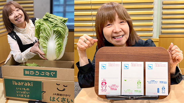 番組でご紹介したみなさんには、番組オリジナル「てくてくノエルちゃん」と、JAグループ茨城 はくさい流通部会から、冬野菜の定番「白菜」4玉入り1箱を産地直送でプレゼント!