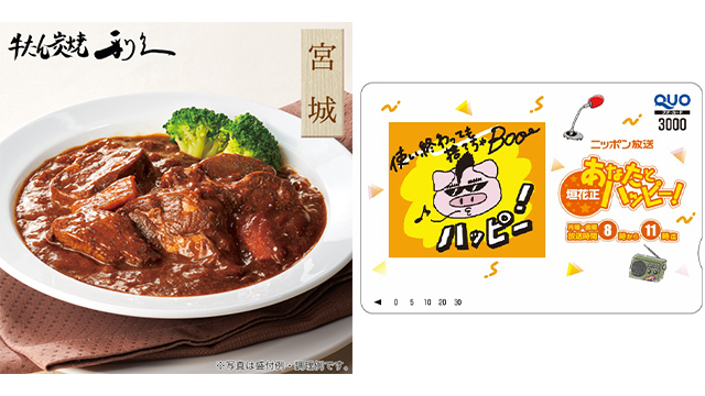メール・FAXを送っていただいた全ての方の中から、抽選で毎日5名様に仙台・利久の牛タンシチュー 300g×4箱をプレゼント! さらに、番組オリジナルQUOカード3,000円分を、毎日10名様に差し上げます!