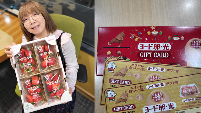 そして「おいしい時間」でおたよりをご紹介した方にはもう1つ! 「ヨード卵・光」6個入り1パックと引き換えることができる「ヨード卵・光 ギフト券」2枚をセットにしてプレゼントします♪
