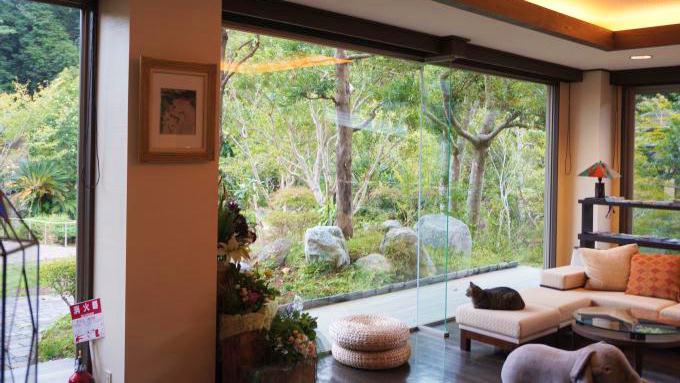 ―本館のロビーは、伊豆の山々が借景になった、眺めのいい大きな窓が印象的ですが、元々、ココには壁があったそうですね?