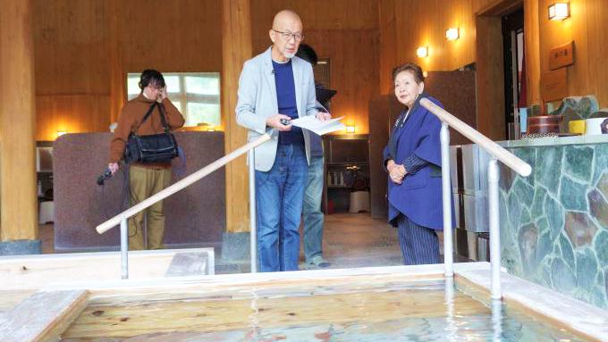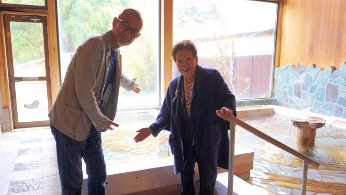 ガラティア内湯(女湯)にて鈴木会長と上柳アナ