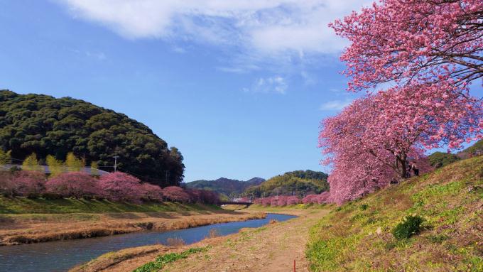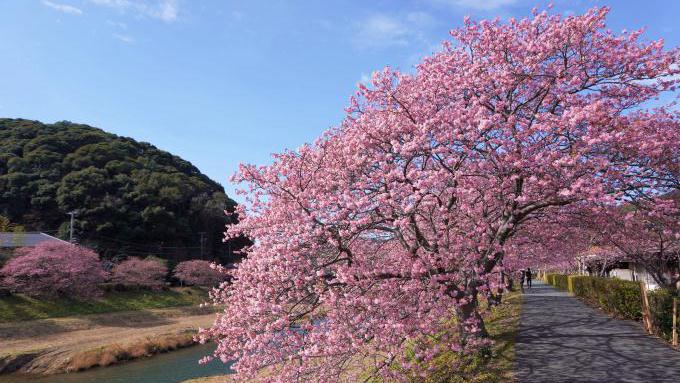 桑原さん:今年は特別に花の勢いがよくて、早くも(2月上旬の段階で)見ごろに近い状態となっています。ただ今シーズンは、桜並木の下、川の土手に咲いていた菜の花が(球根で育つ)水仙やあじさいの花が強い状況になっているため、(菜の花が)やや弱くなってしまっています。こういった風で菜の花の種が飛ばされて、また勢いを盛り返してくれることを期待しています。桜と菜の花の共演が楽しめるポイントもありますので、ぜひ探していただけたらと思います。風が無ければ日差しも強くなってきていますので、とても過ごしいいと思います。河津桜は満開になってからも花の持ちがいいので、しばらくの間、見ごろの期間が続きます。