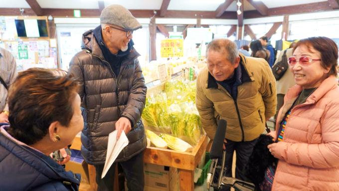お客様:(静岡の)伊東から来ました。(湯の花には)何回も来ています。毎年、桜の時期には必ずというほど来ているんです。(目当ては)野菜や果物ですね。今日もぜひ買っていきたいと思います。