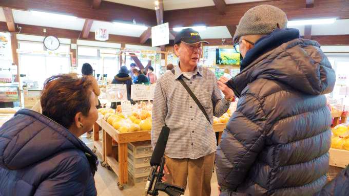 お客様:神奈川県の藤沢市から来ました。毎年、桜の時期に下田に泊まれれば、(湯の花に)来ています。夫婦で来て、(家で食べる)食材を買って帰りますね。