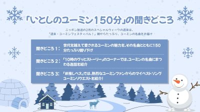 あなたの思い出が詰まったユーミンソングのリクエストを大募集📮 日曜の『#ヒッパラ』と合わせ計330分、ユーミンで盛りあがりましょう⛷️