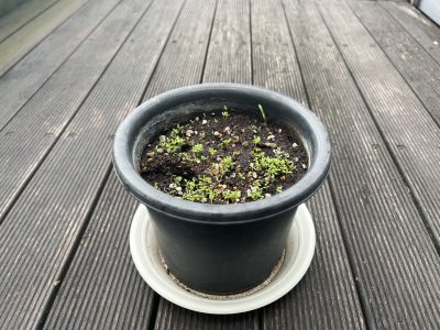 ベランダ菜園の「29代目」の植物、「ペッパー」(コショウではありません💦)。小さな双葉がたくさん🌱