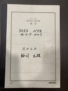 チーム資料ノートには日付、先制したゲーム、逆転したゲーム、ランニングスコア、投手リレー、チーム安打、直近の試合で一桁安打がどれぐらいあるのか、投手リレー、打順が何番でポジション、何回にどういう内容のタイムリーヒットなど、事細かに情報をまとめている。