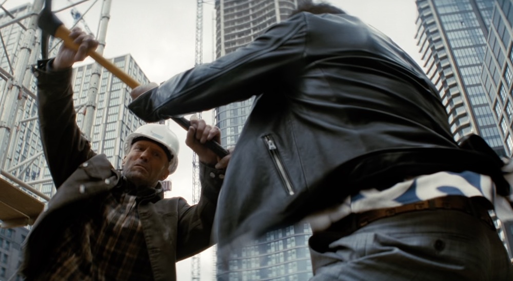 ⼈⾝売買を⽣業にする凶悪なロシアンマフィアたちを相⼿に、建設現場で使い慣れた⼯事⽤具や特殊部隊時代の銃⽕器を⼿にたった⼀⼈で⽴ち向かう姿がカッコいいのなんのって!