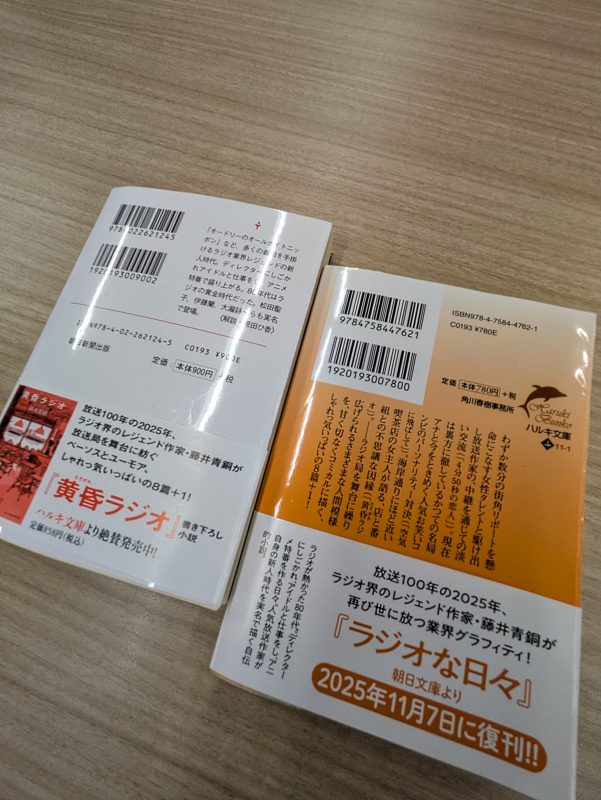 ちなみにハルキ文庫の「黄昏ラジオ」の帯の裏には朝日文庫の「ラジオな日々」の広告が。そして朝日文庫の「ラジオの日々」の帯の裏にはハルキ文庫の「「黄昏ラジオ」の広告がそれぞれ載っていました。