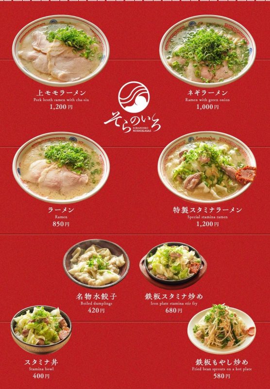 「豚骨らーめん そらのいろ 西葛西店」は麹町本舗とは少しメニューを変えています。