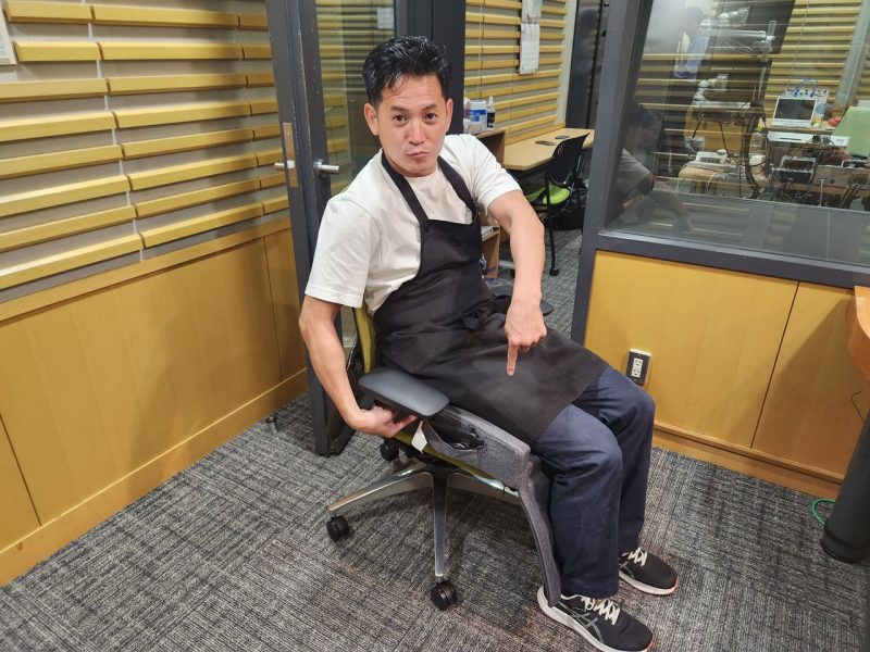 ついていまして、クッションの部分はお尻、そして滑り台のような部分が太ももの裏から、