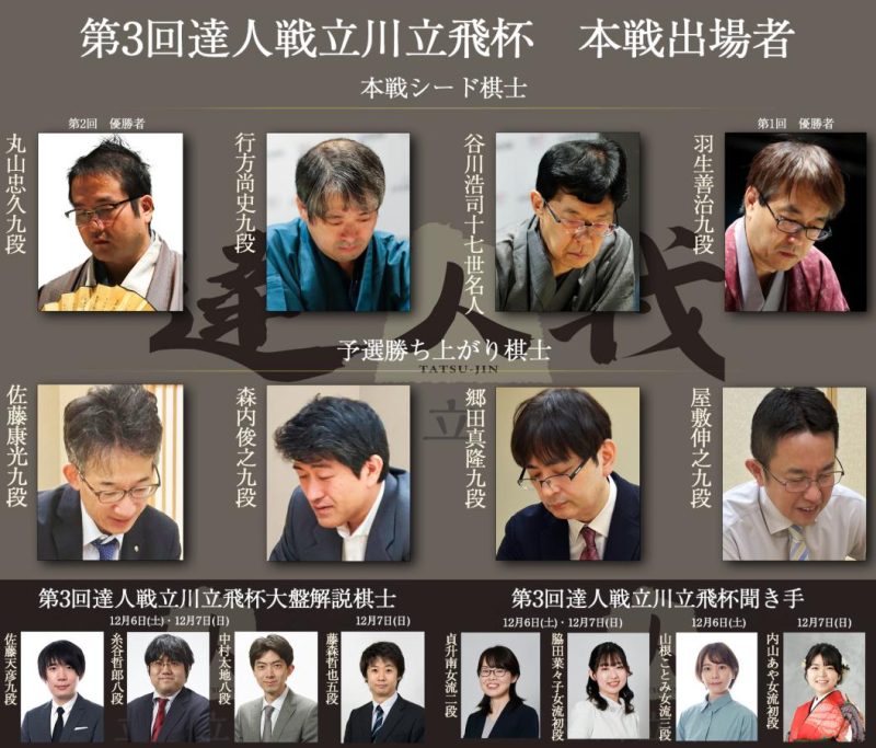達人戦立川立飛杯は、将棋界を牽引してきた50歳以上の棋士による公式戦です。