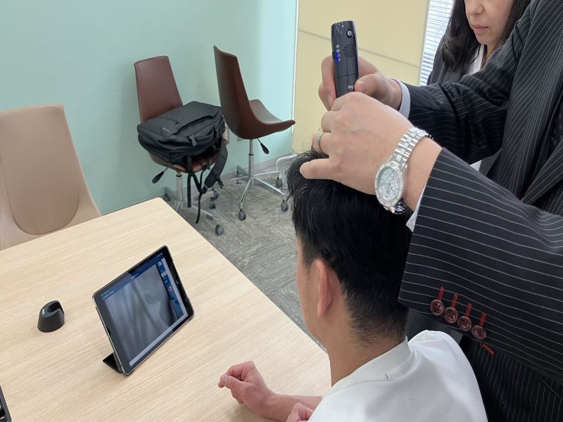 マイクロスコープで頭皮を拡大し、髪の密度や太さ、頭皮や毛穴の状態などをチェックします。