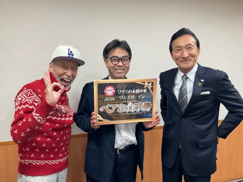 渡邉さんから杉山さんへ、夫婦ペアお食事権が贈られました。